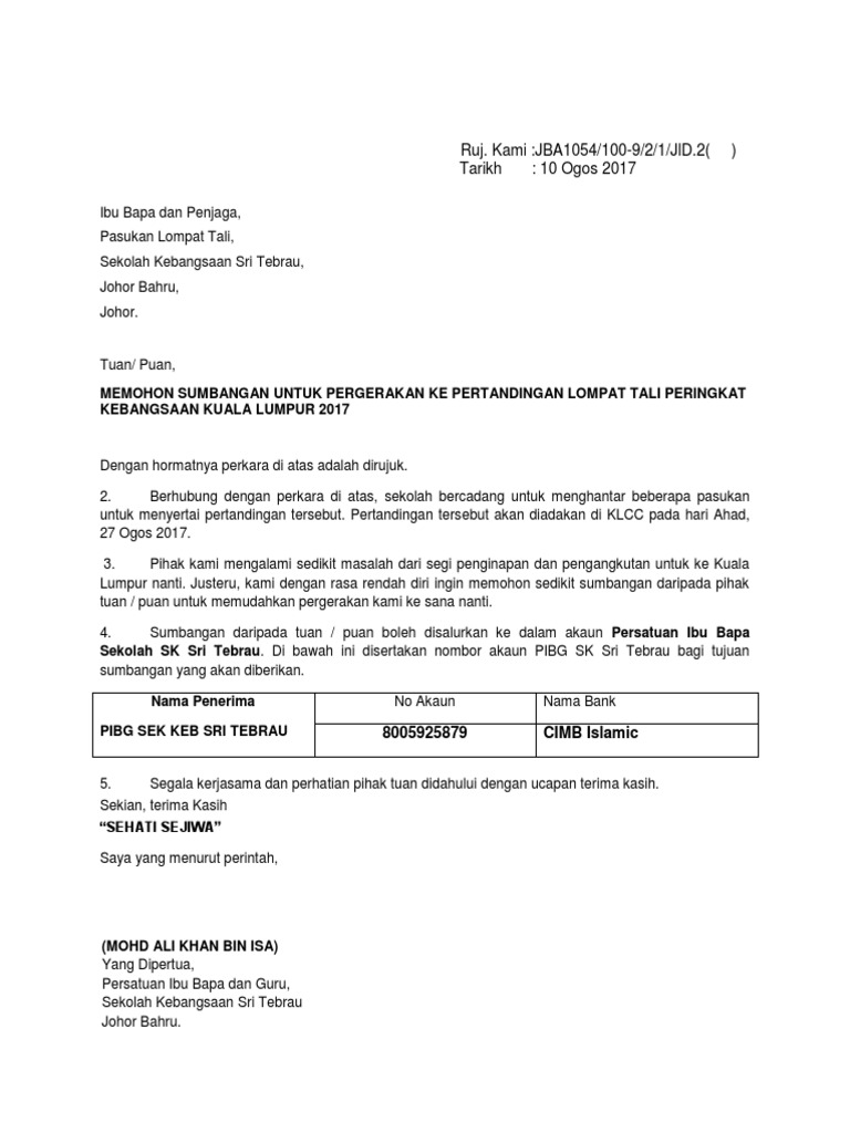 Contoh Ayat Permohonan Sumbangan
